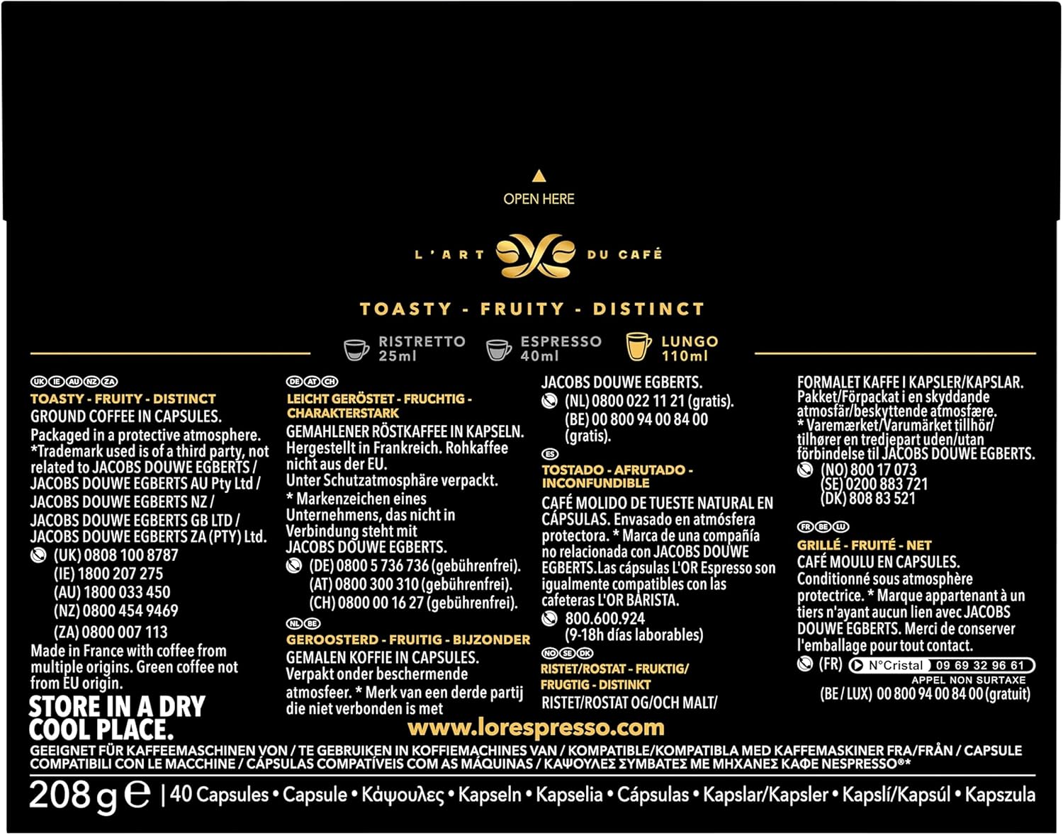 Perfect for enjoying as a lungo (110ml) for a longer, more intense coffee experience, brewing as a standard espresso (40ml) for maximum intensity, or using as a base for Americanos and milk-based drinks where you want bold coffee flavour. The Nespresso compatibility means you can enjoy L'OR quality with the convenience of your existing machine.