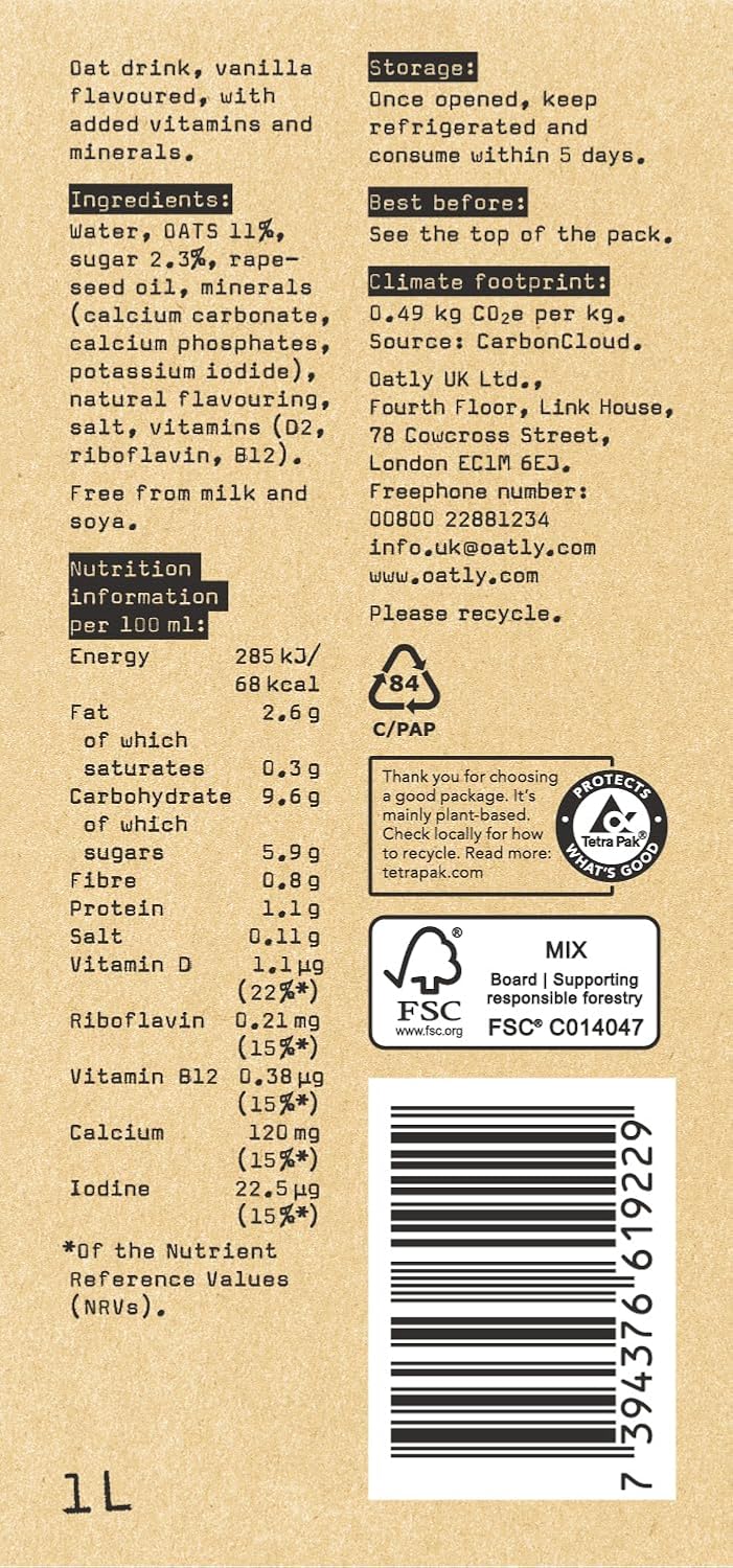 Discover the smooth, naturally sweet taste of Oatly Vanilla Drink - the perfect dairy-free alternative that's taking the UK by storm. Made from premium Swedish oats, this plant-based drink delivers a rich, creamy texture with a delightful hint of vanilla that transforms your morning coffee, cereal, smoothies, and recipes.
