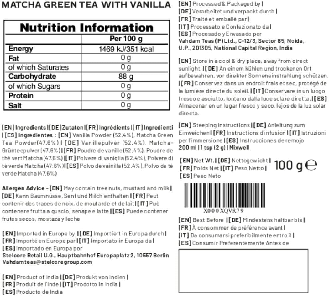 VAHDAM Japanese Vanilla Matcha Green Tea Powder 100g - Premium Vanilla Matcha